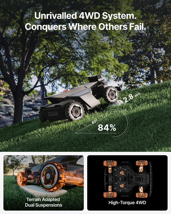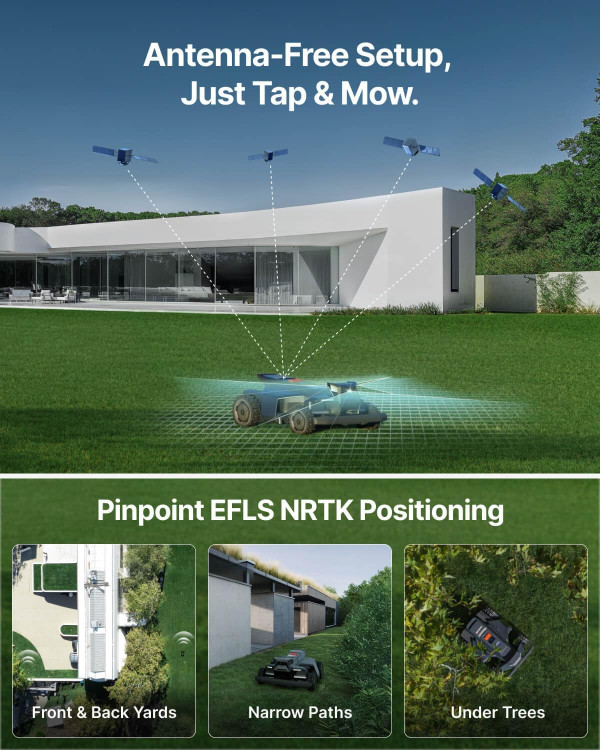 - Advanced Navigation – Uses GPS, LiDAR, and AI for precise mowing