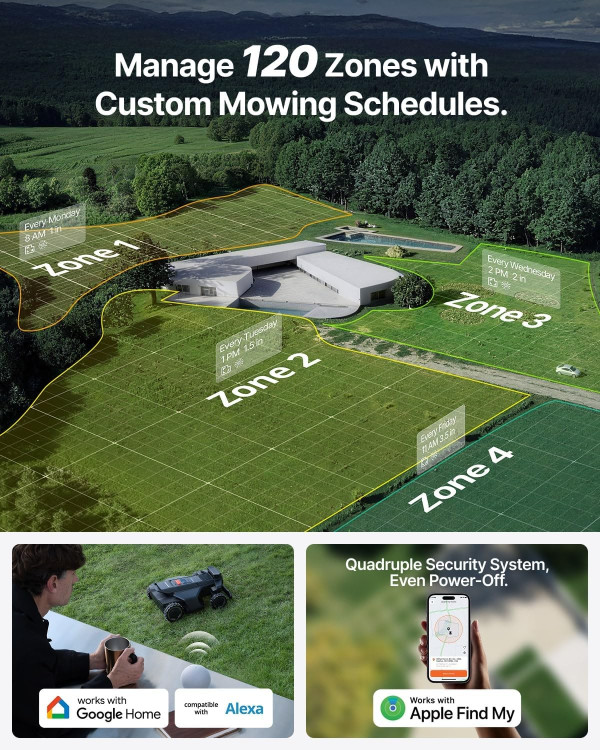 - Smart App Control – Schedule mowing and manage zones easily