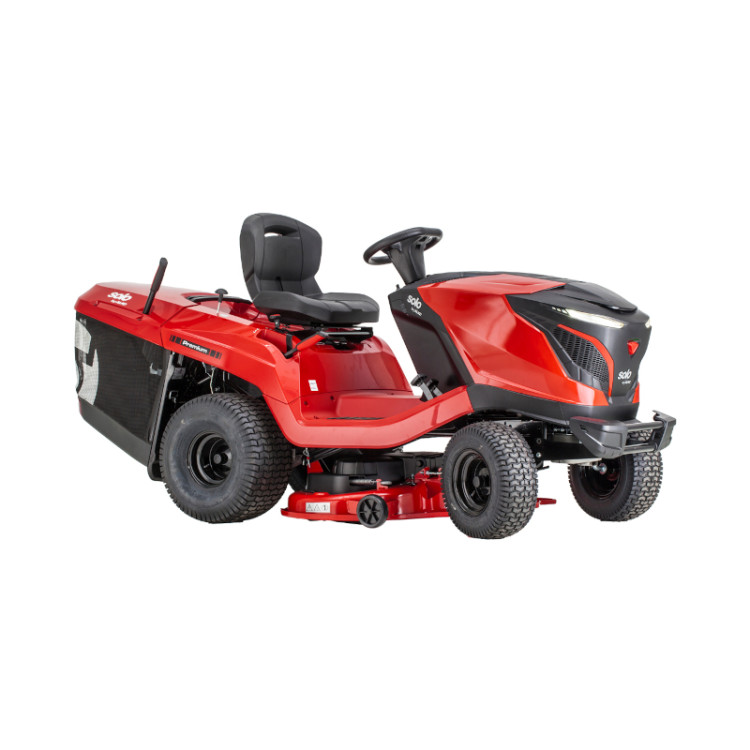 The 95 cm cutting width helps you cover large areas faster. Then, the twin blade system ensures a clean and even finish across your lawn.